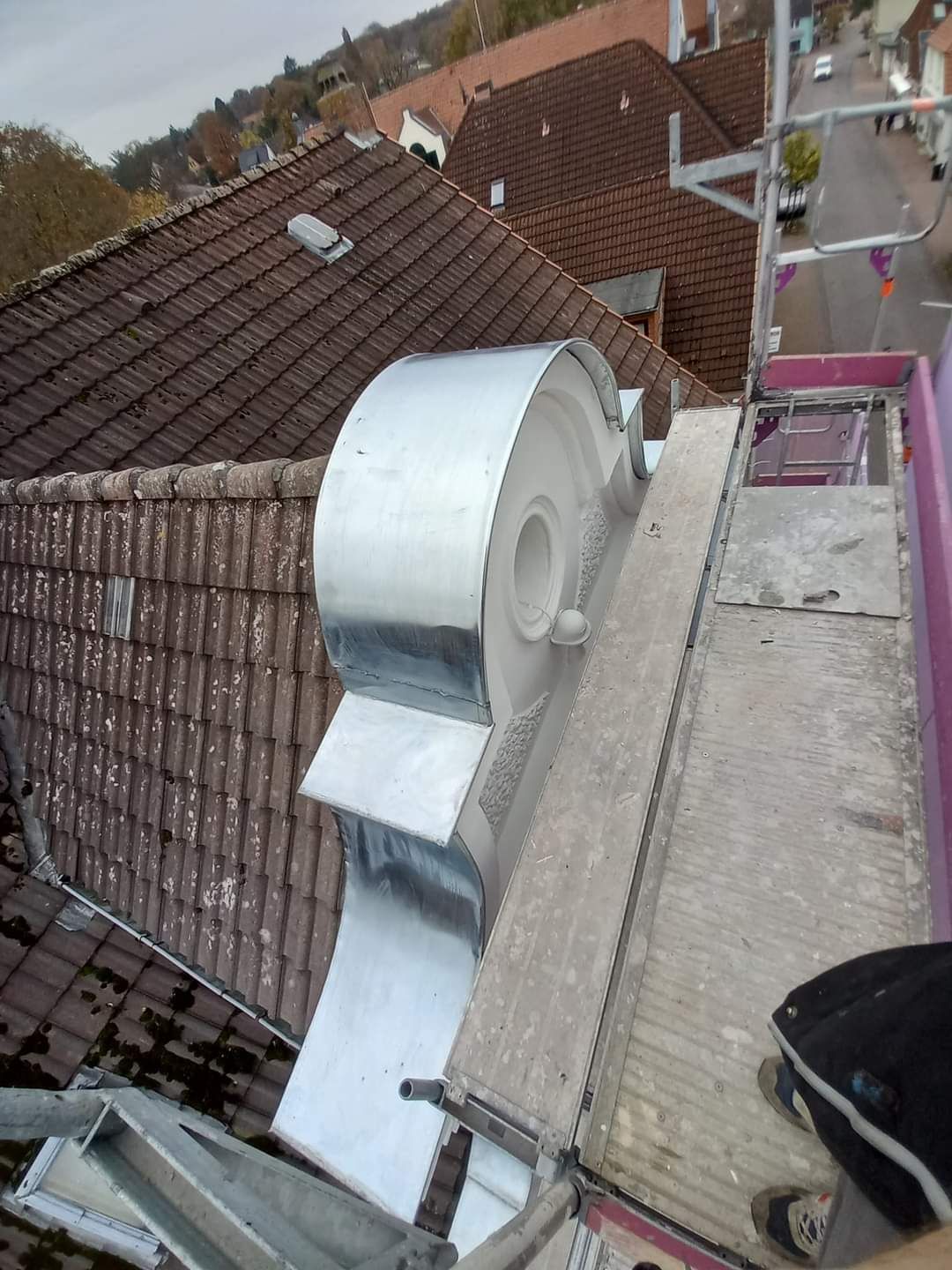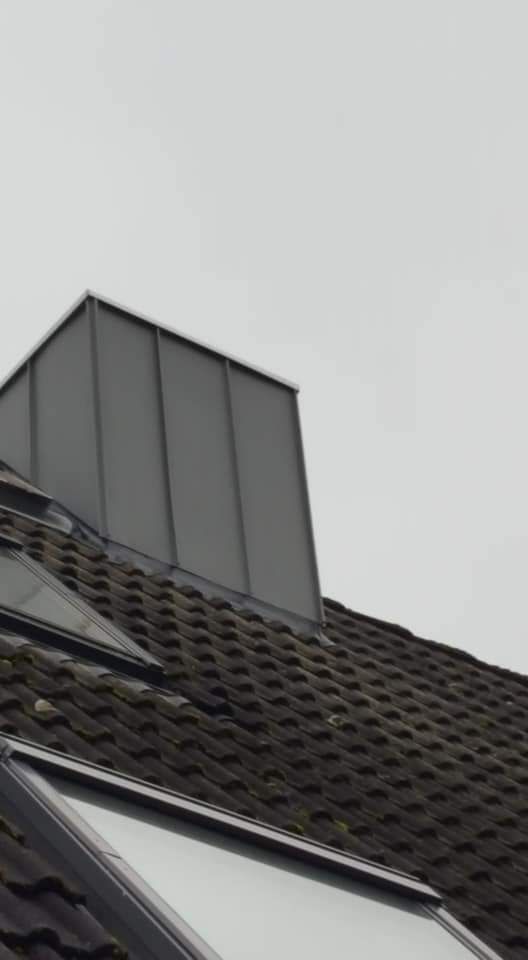 ButtonSchornsteinverkleidung mit Prefa-Stehfalz