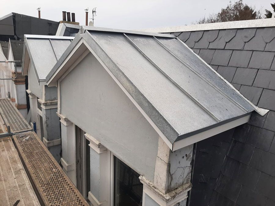 Dachsanierung mit Naturschiefer und Stehfalz-Scharren in Bremerhaven